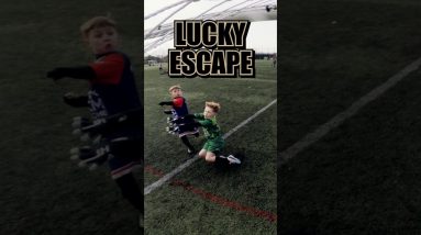 Harvey tries to clear it… It rebounds off the striker towards the goal! Luckily, a defender steps in with a massive save and gets the biggest thank you ever 😂…