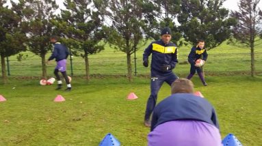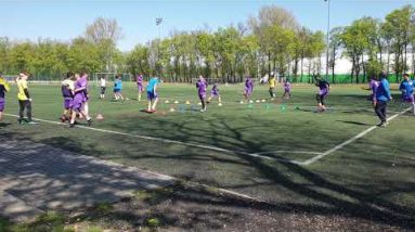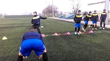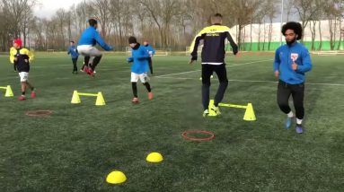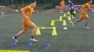 Treino europeu de coordenação, pliometria, velocidade curta, condução, domínio, passe, rotação com bola. source