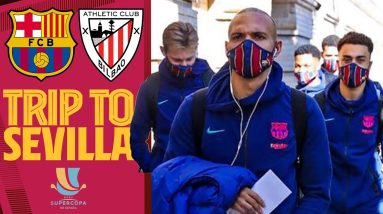 See how the team travelled to Sevilla from Barcelona ahead of the Supercup final. The squad will rest in a hotel in Sevilla’s city center before the Barça – Athletic…