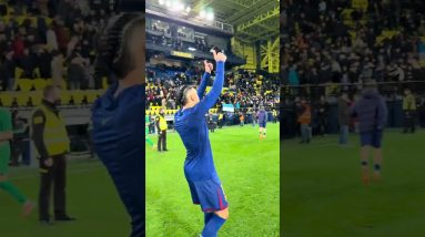 FC Barcelona players celebrate the victory at the Estadio de la Cerámica and thank the travelling fans who supported the team in the final LaLiga match — and final game…
