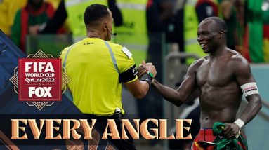 Cameroon’s Vincent Aboubakar receives a RED CARD for taking his shirt off in the 2022 FIFA World Cup