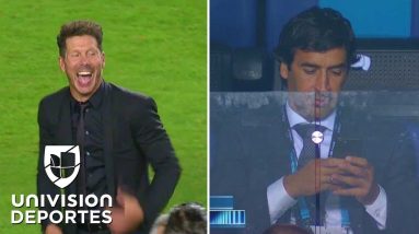 El Atlético de Madrid se llevó la Supercopa al vencer 4-2 en tiempo extra al Real Madrid. Aquí la celebración del DT argentino y la cara de tristeza del exfutbolista…