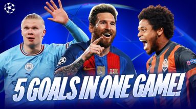 Watch these Champions League legends score the most goals in a single game EVER! Lionel Messi, Erling Haaland and Luiz Adriano all hold the record jointly having scored five goals…