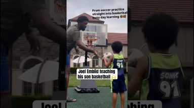 Joel Embiid teaching his son, Arthur Embiid, to shoot a basketball. #joelembiid #basketball source