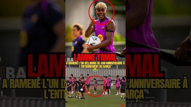 Lamine Yamal a ramené l’un des nains de son anniversaire à l’entraînement du Barça. 😭💀 #football